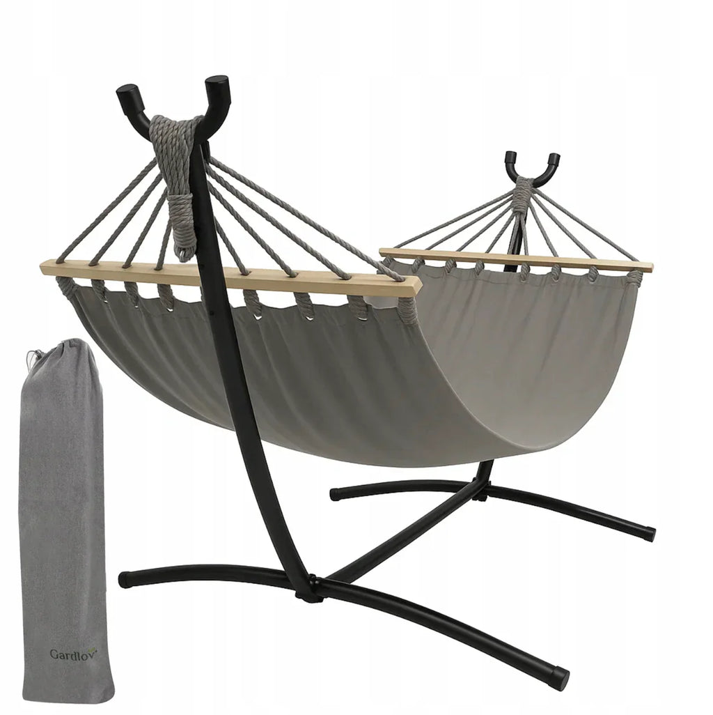Dvojmiestna záhradná hojdacia sieť na rošte Hojdačka Silná 250 kg Závesné tyče XL Model Hamak Ogrodowy Dwuosobowy + Pokrowiec GARDLOV
