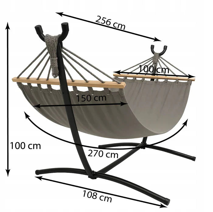 Dvojmiestna záhradná hojdacia sieť na rošte Hojdačka Silná 250 kg Závesné tyče XL Farba sivý