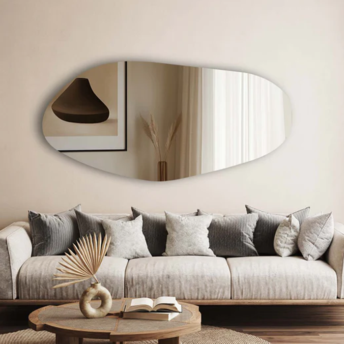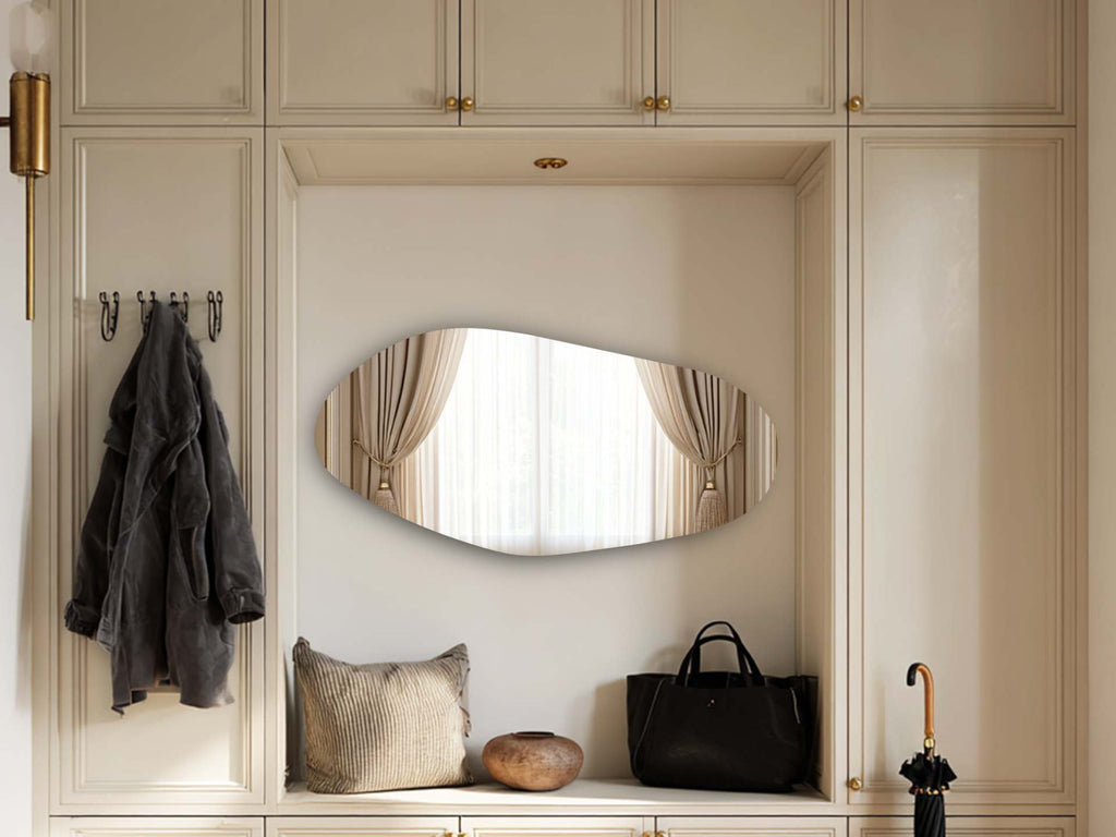 Zrkadlo môžete zavesiť na stenu alebo voľne oprieť, čo vám umožňuje prispôsobiť dizajn interiéru podľa potreby. Úchyty na zavesenie sú súčasťou balenia. Ak máte špecifické požiadavky na uchytenie, uveďte ich do poznámky pri objednávke. Hrany zrkadla sú leštené pre bezpečné a estetické zakončenie.